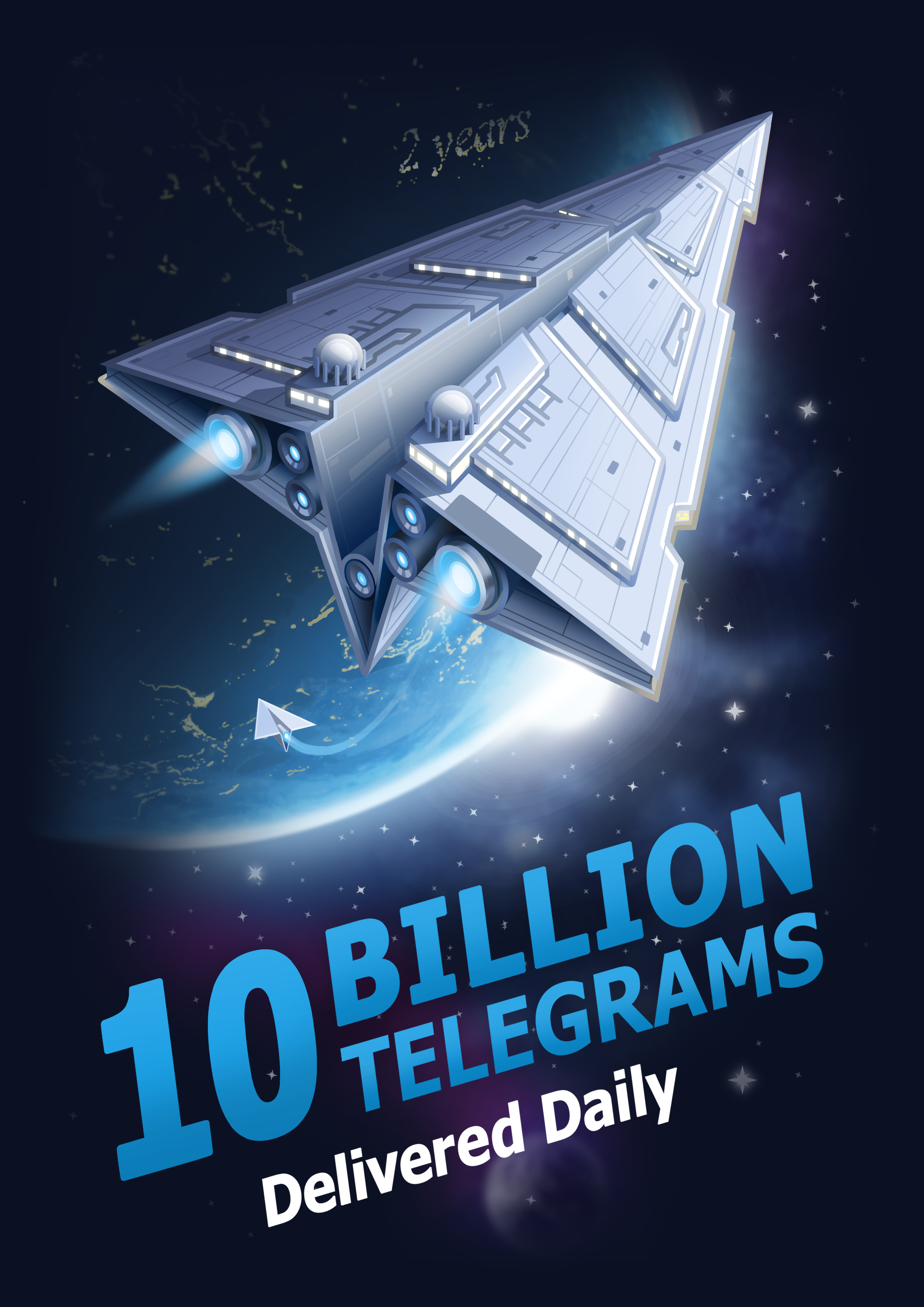 It‘s Telegram’s birthday today! We launched our iOS app exactly two years ago. Now we're delivering over 10 billion messages daily – that's roughly the number of push notifications that are sent by Telegram each day. All thanks to you.